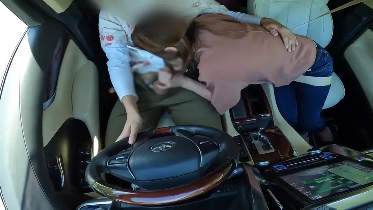 A slutty Japanese housewife with big tits enjoys a surprise blowjob from her younger lover in the backseat of her car. She moans as he goes down on her, then he pounds her deep and fills her up with a slutty creampie.