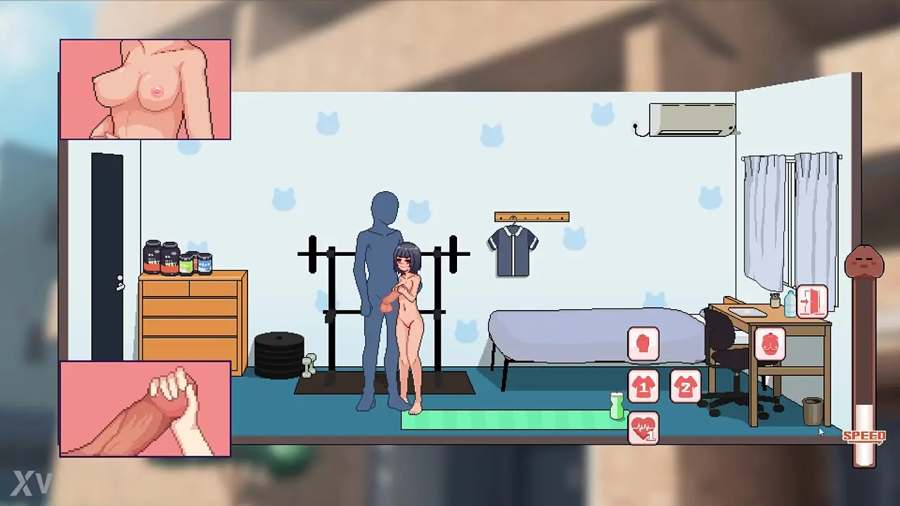 A short, cute Asian girl gives a mind-blowing handjob to a huge rod, teasing and milking it until he cums all over her hand. She can't hold back her own orgasm as she feels his load shooting into her.