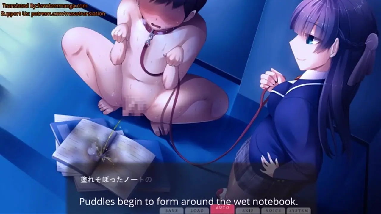 Beautiful, busty schoolteacher dominates cute anime foot slave, performing a sloppy footjob. She makes him worship her feet, licking and licking them. He cums all over her feet, while she has an amazing squirting orgasm.