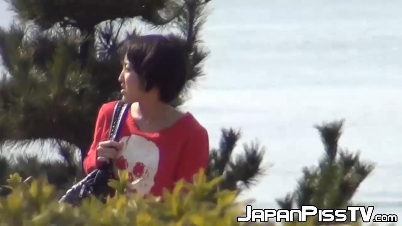 Two attractive Japanese women are caught on hidden camera in high heels as they secretly pee hard in public. Their hairy pussies are seen up close, and the outdoor location adds to the voyeuristic feel of this unique pee fetish scene.