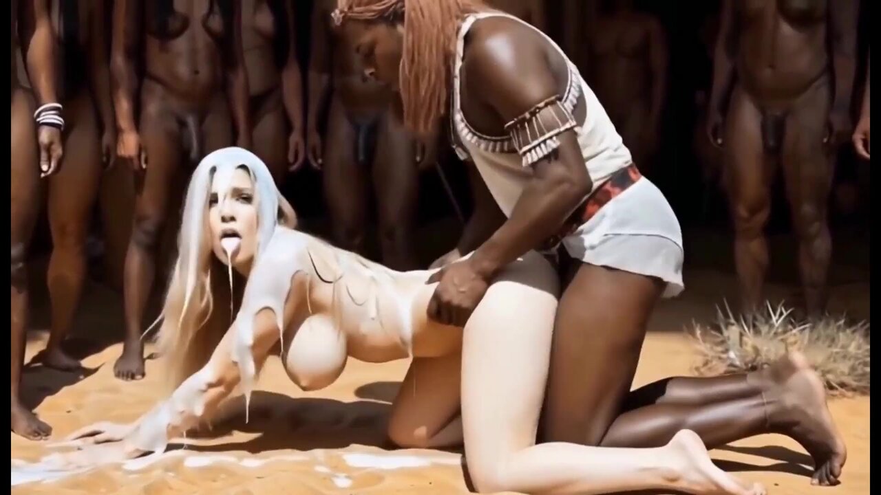 In this AI-generated scene, a curvy and mature Asian blonde fantasy fulfills her dream of being filled by a huge black tool. She moans as he pounds her clenching booty while her huge boobs jiggle in slow motion. They both enjoy a satisfying creampie with an intense cumshot.